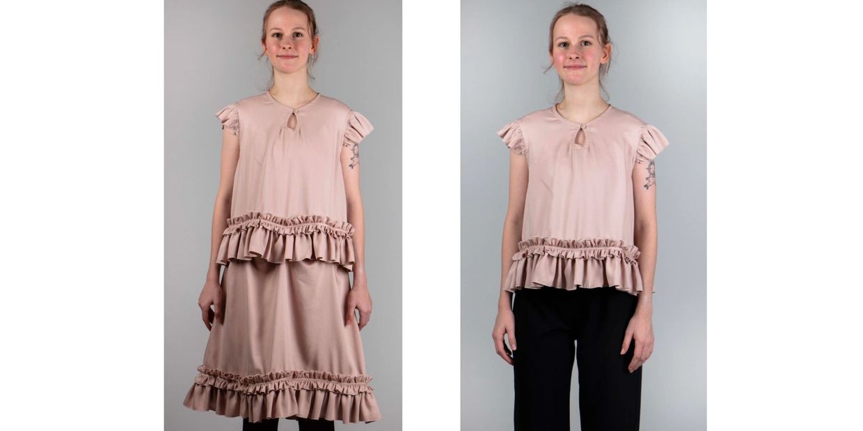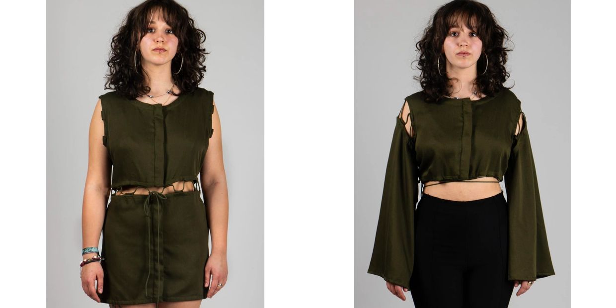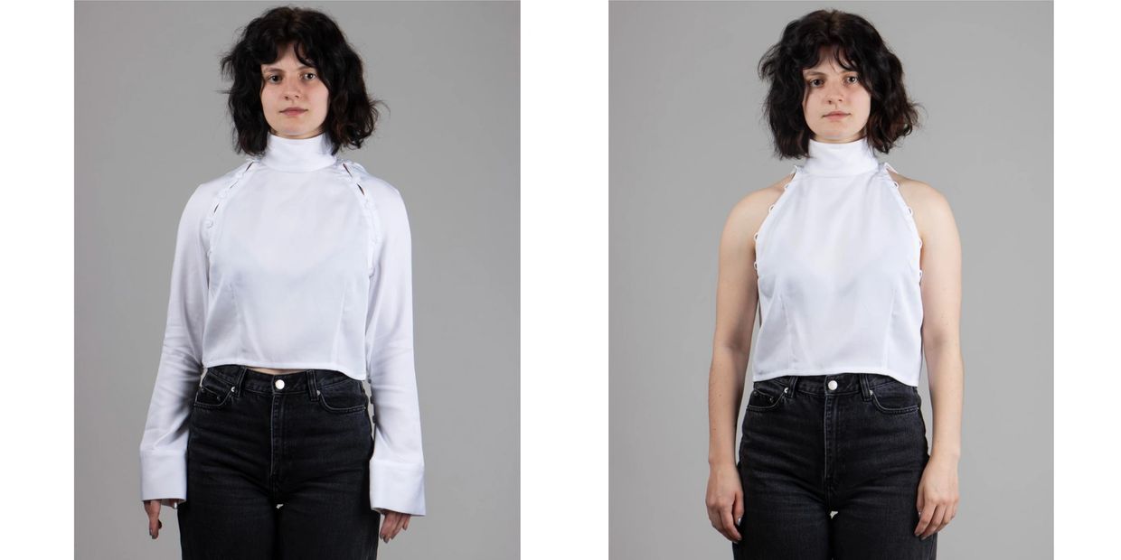 Die Studierenden der Modeschule Hallein, des Kollegs für Modedesign, hatten für dieses Projekt die Aufgabe, Konzepte für multifunktionale Blusen zu entwickeln und diese dann auch zu fertigen. Ziel war es, ein Kleidungungsstück mit verschiedenen Funktionen zu konzipieren, damit der/die Konsument*in anstelle von zwei Kleidungstücken nur eines kauft.